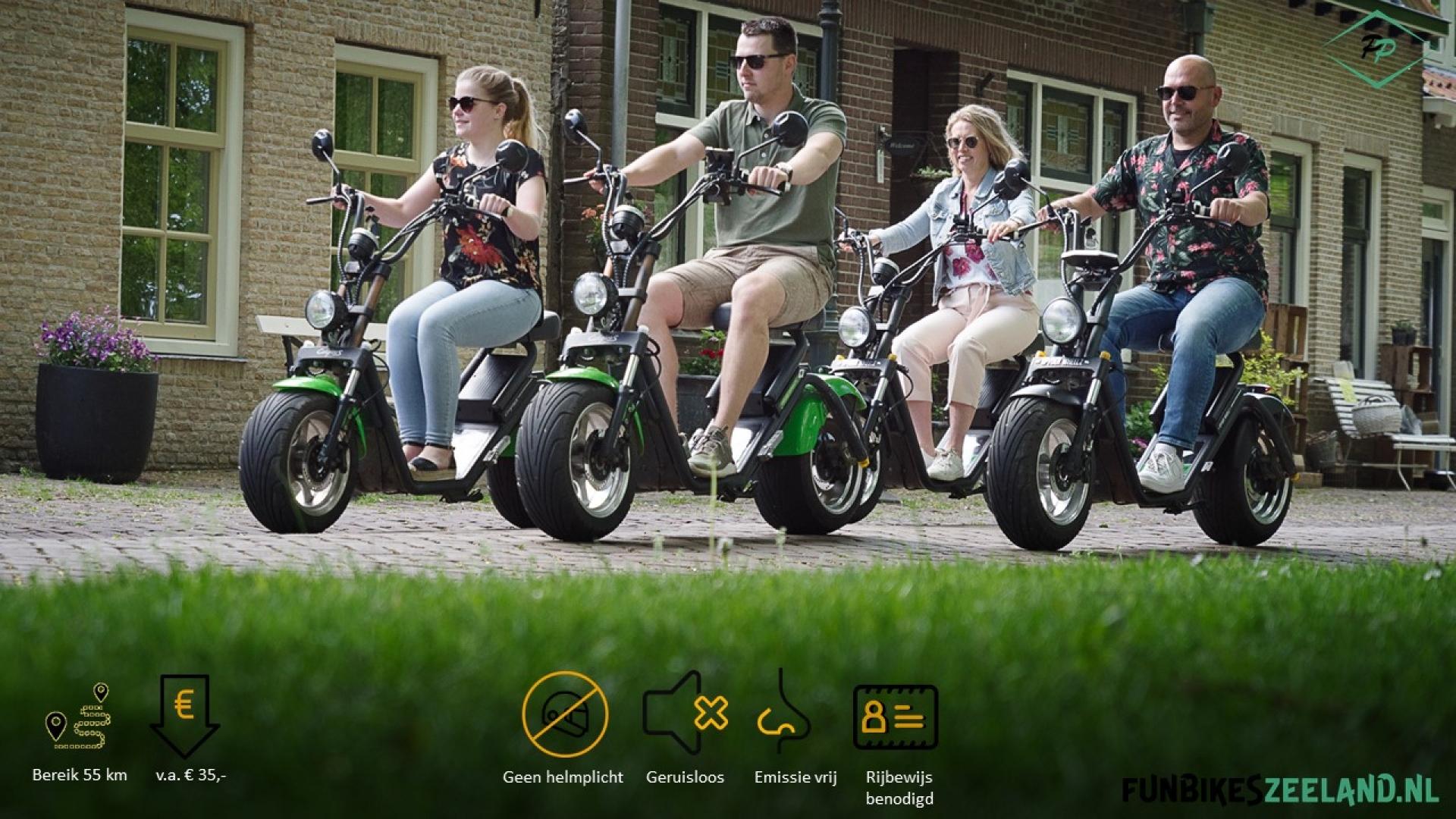 De e chopper is ontwikkeld voor twee personen met een maximum van 165 kilo. Hoeveel personen mogen er op een e chopper. Maak nu een schitterende tocht in de regio bergen op zoom met je vrienden familie en of collega s. De scooters zijn volledig elektrisch en milieuvriendelijk.